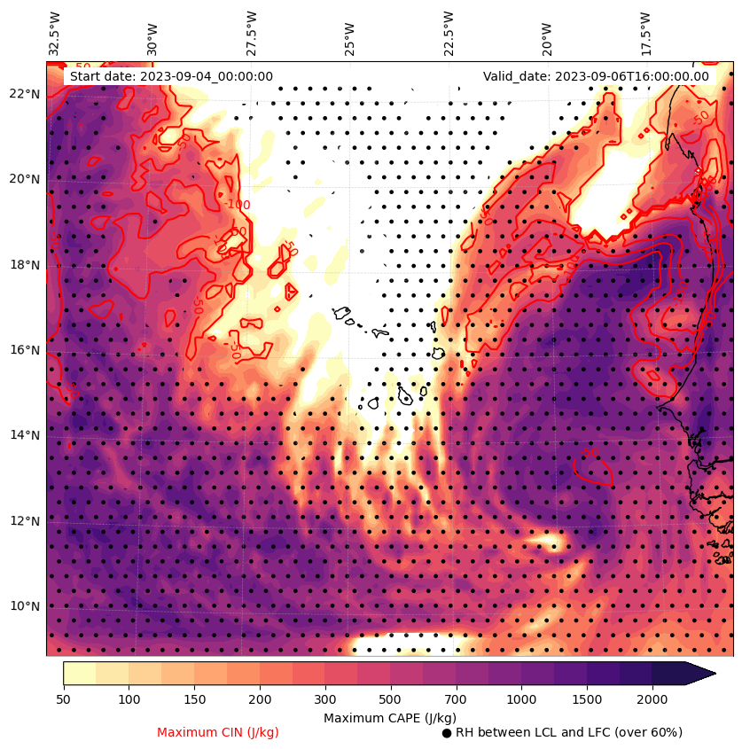 • Maximum CAPE (J/Kg)