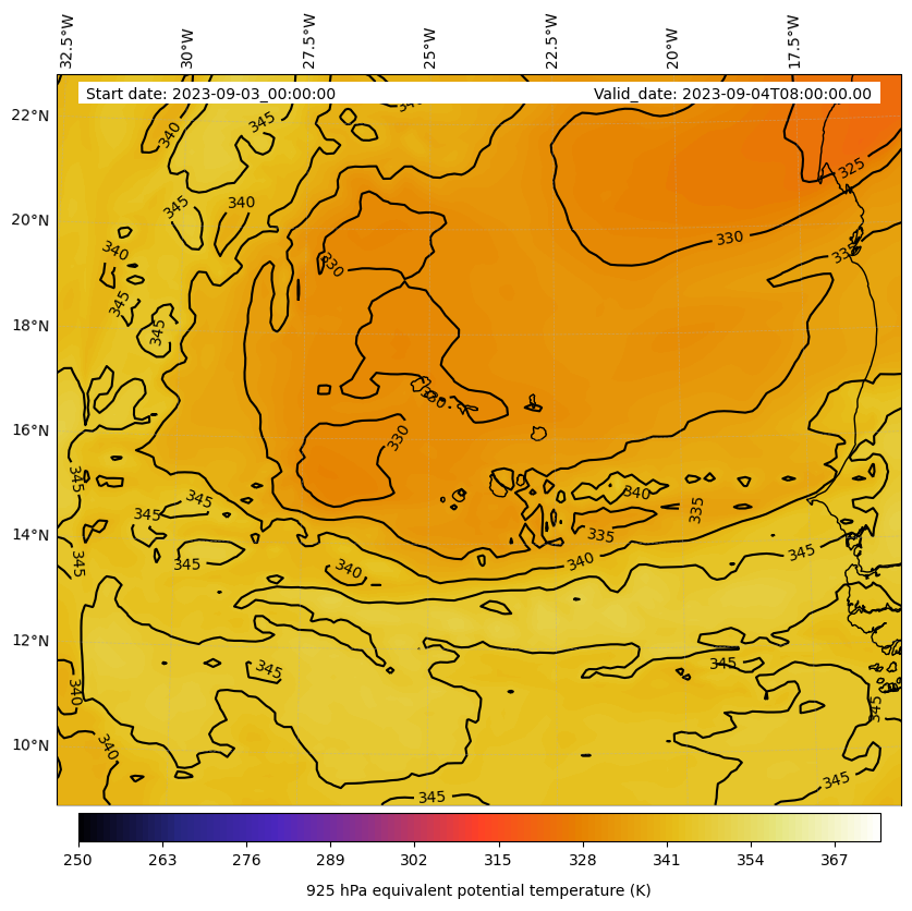 - Equivalent Potential Temperature (K)