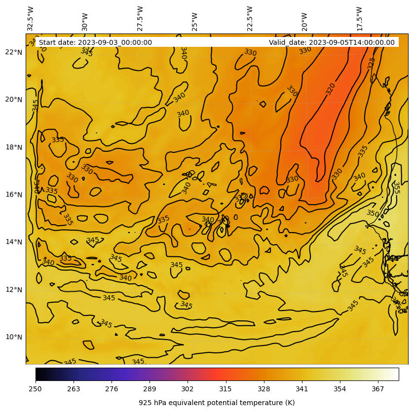- Equivalent Potential Temperature (K)