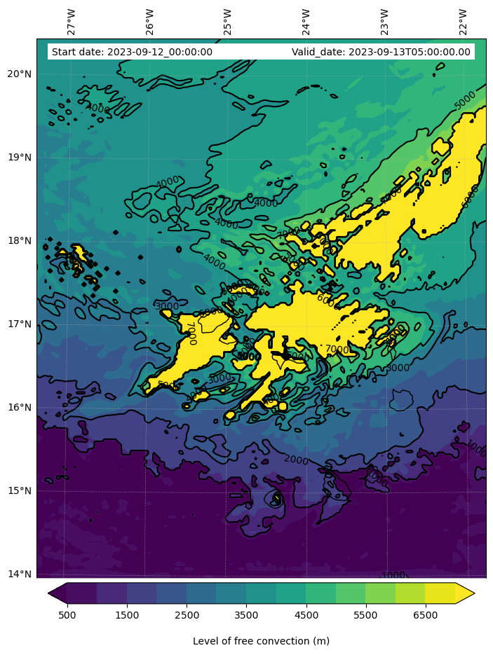 - Level of free convection (m)