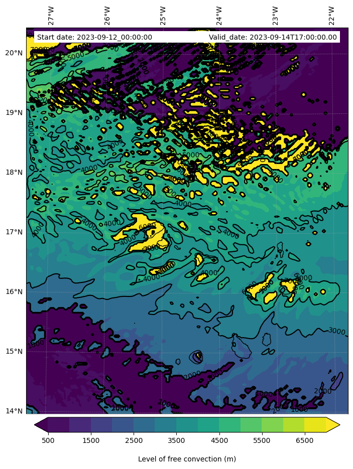 - Level of free convection (m)