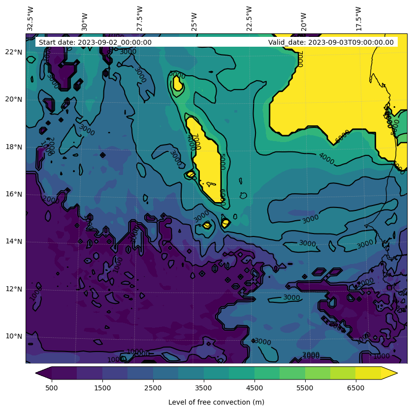 • Level of free convection (m)