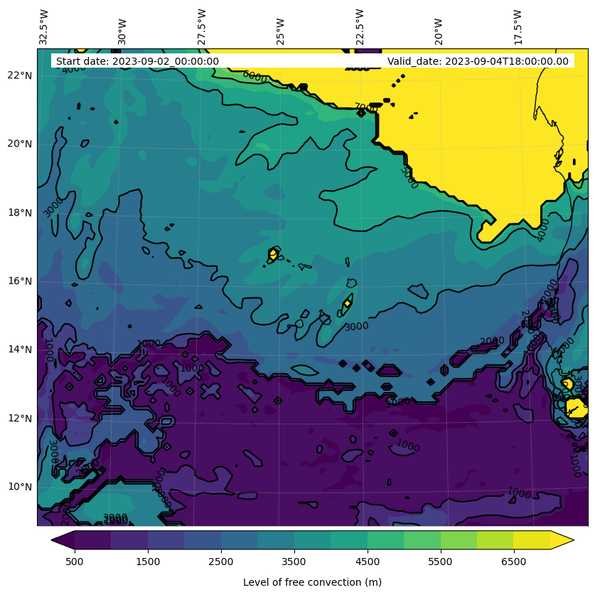 - Level of free convection (m)