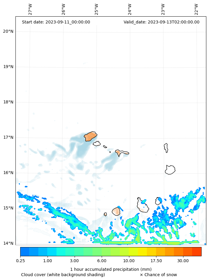- Snow mixing ratio (g kg¯¹)