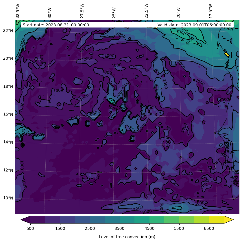 - Level of free convection (m)
