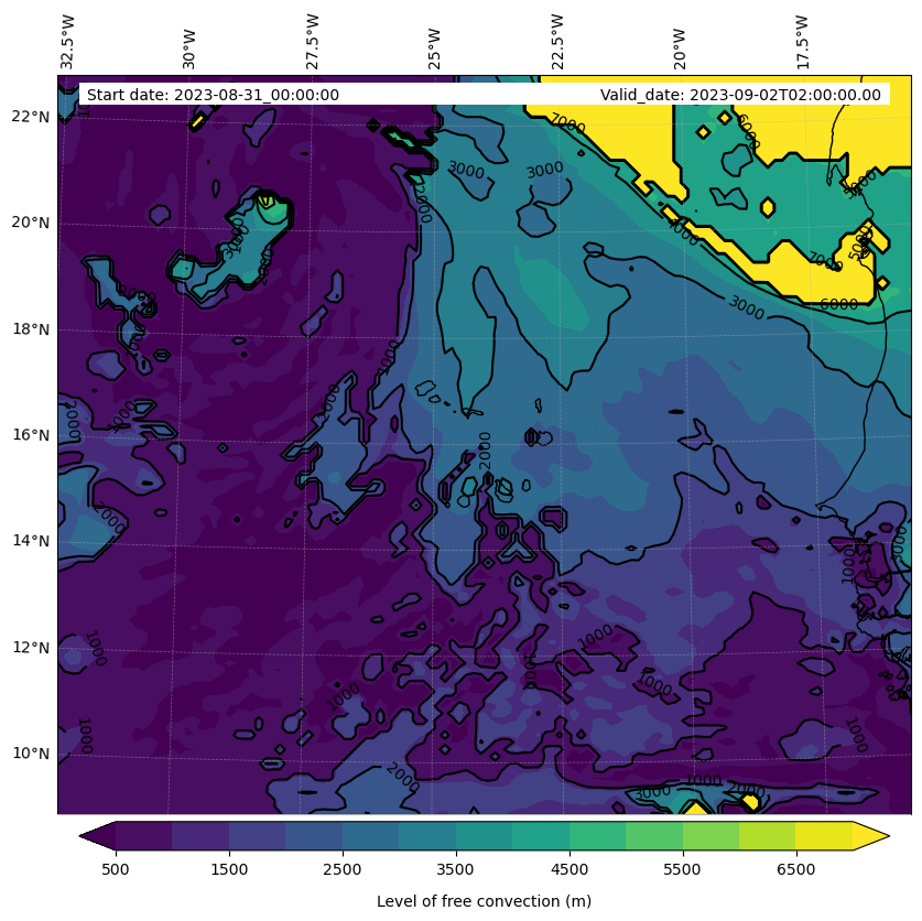 - Level of free convection (m)