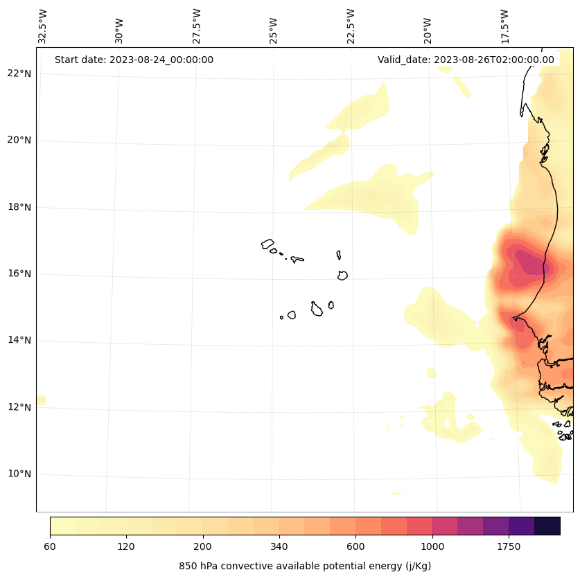 - Maximum CAPE (J/Kg)