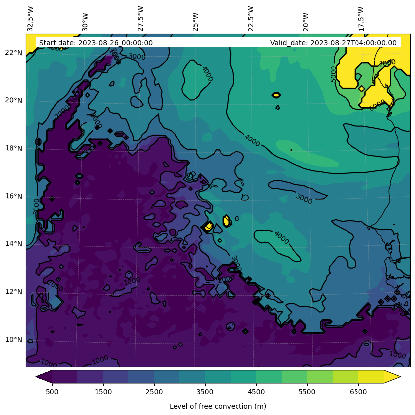 - Level of free convection (m)
