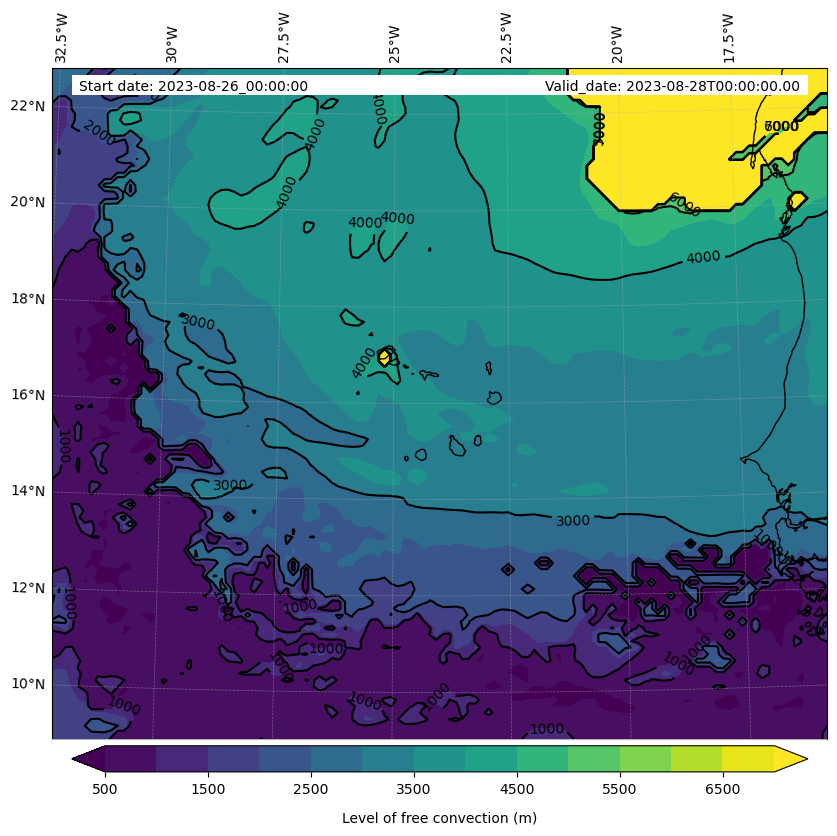 - Level of free convection (m)