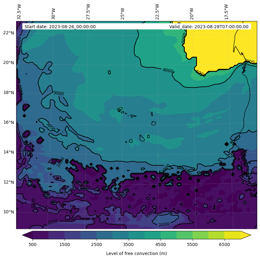 - Level of free convection (m)