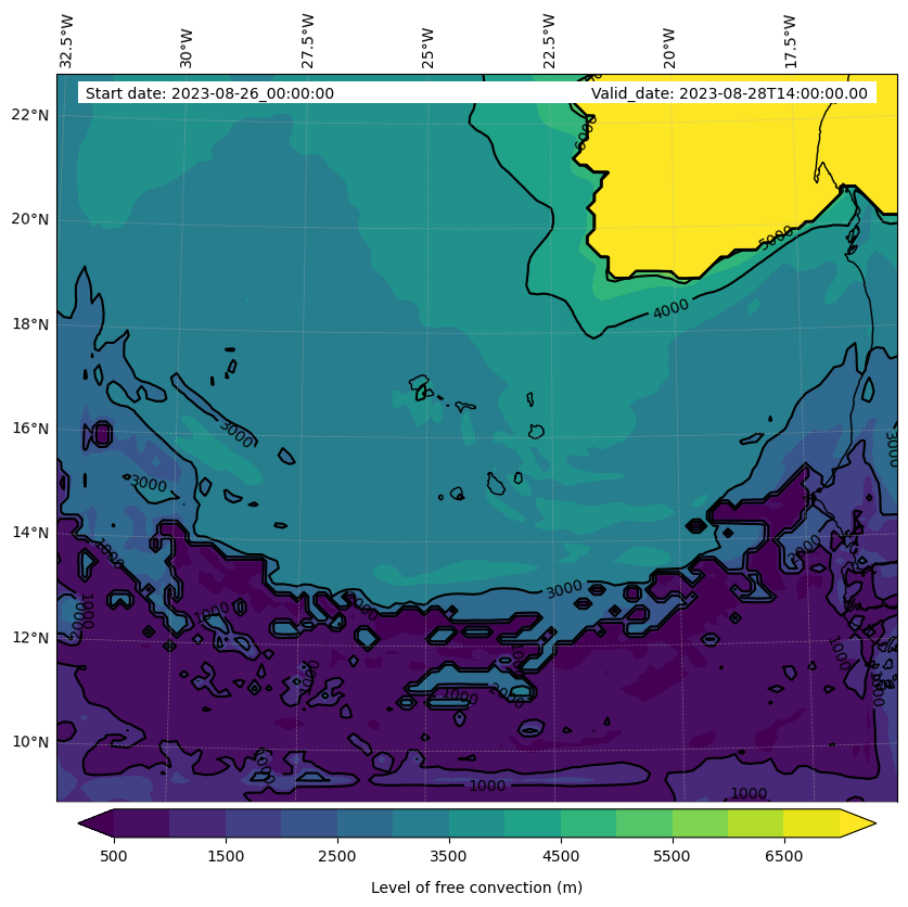 - Level of free convection (m)