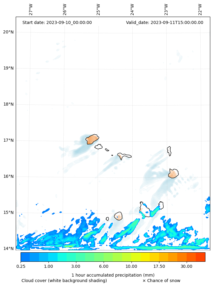 - Snow mixing ratio (g kg¯¹)