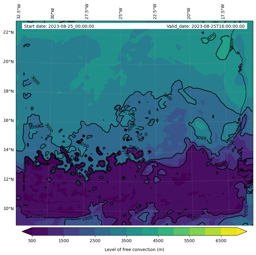 - Level of free convection (m)