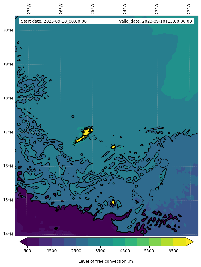• Level of free convection (m)