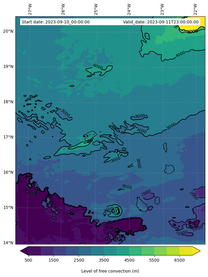 • Level of free convection (m)