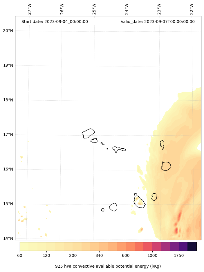 - Maximum CAPE (J/Kg)