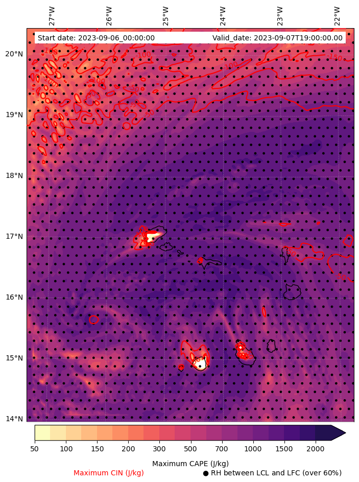 - Maximum CAPE (J/Kg)