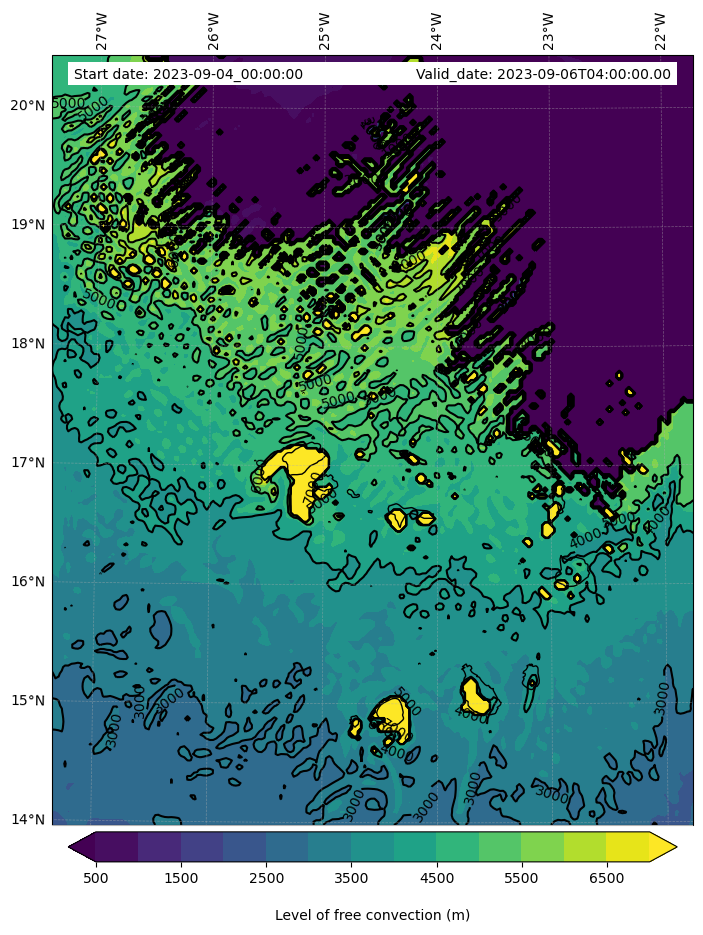 - Level of free convection (m)