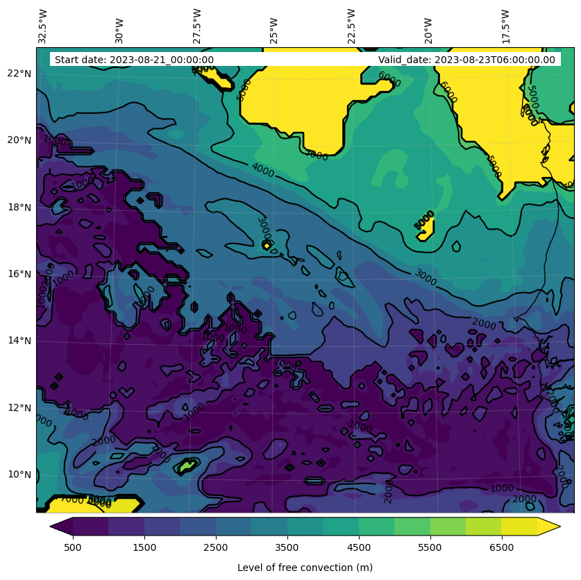 - Level of free convection (m)