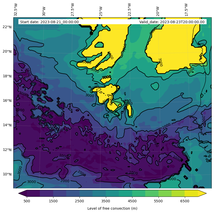 - Level of free convection (m)