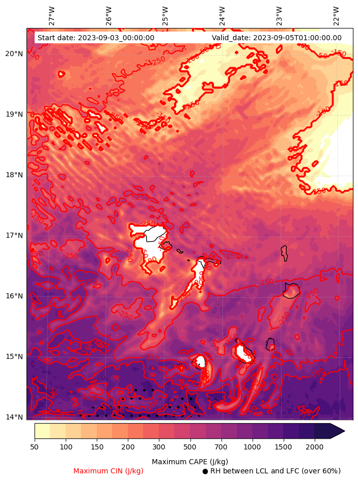 - Maximum CAPE (J/Kg)