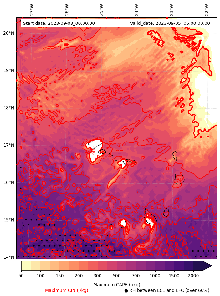 - Maximum CAPE (J/Kg)