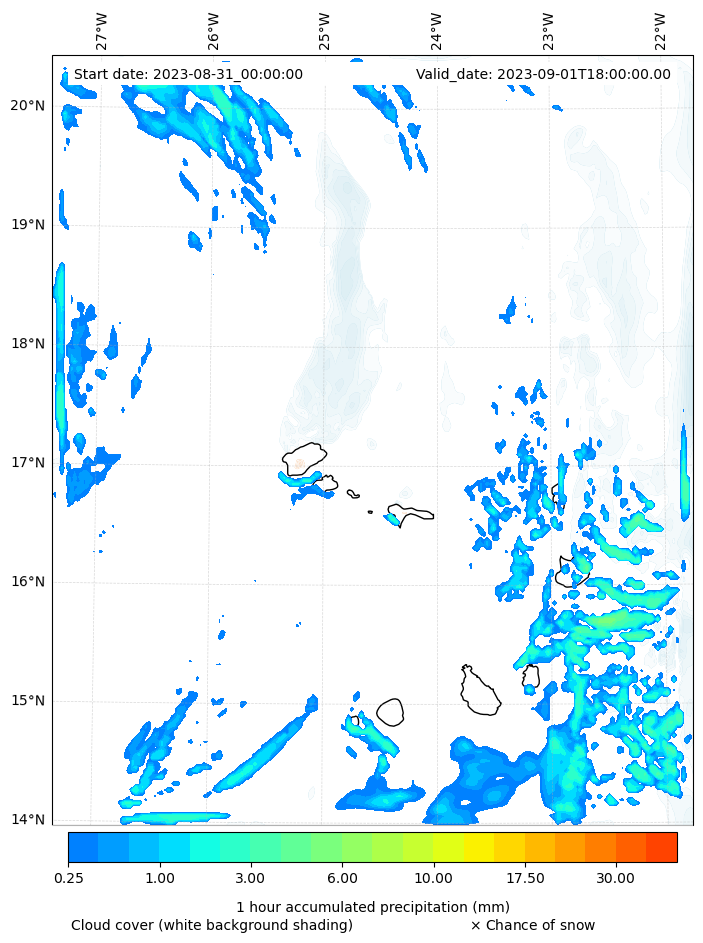 - Snow mixing ratio (g kg¯¹)