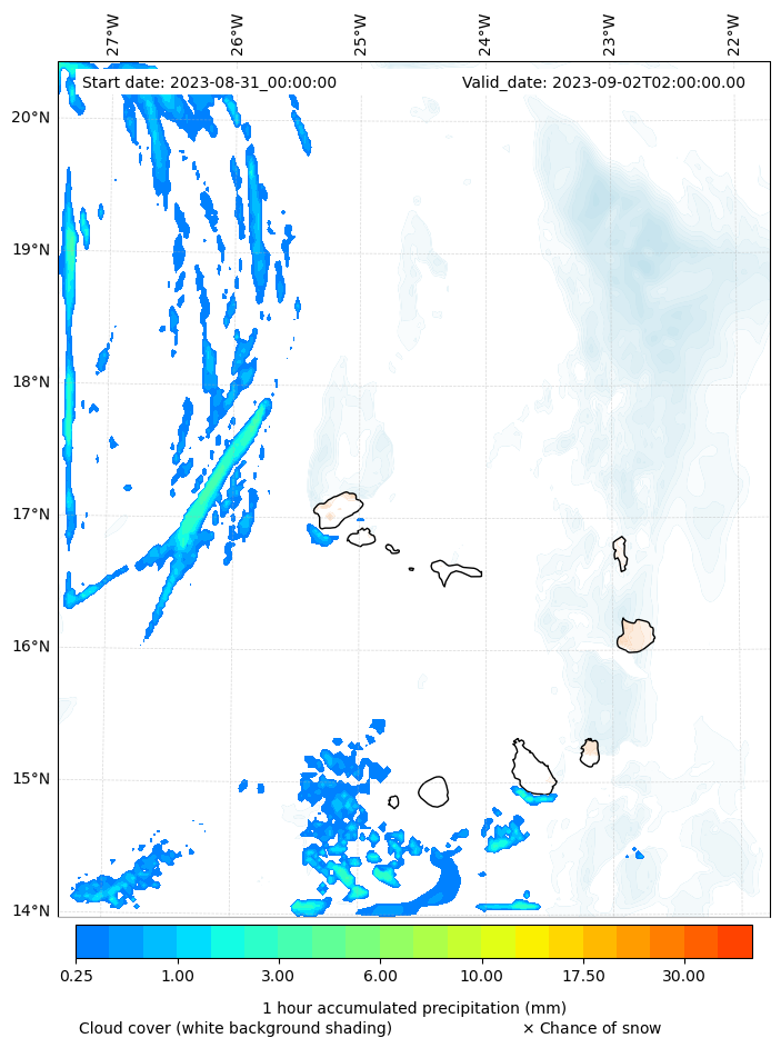 - Snow mixing ratio (g kg¯¹)