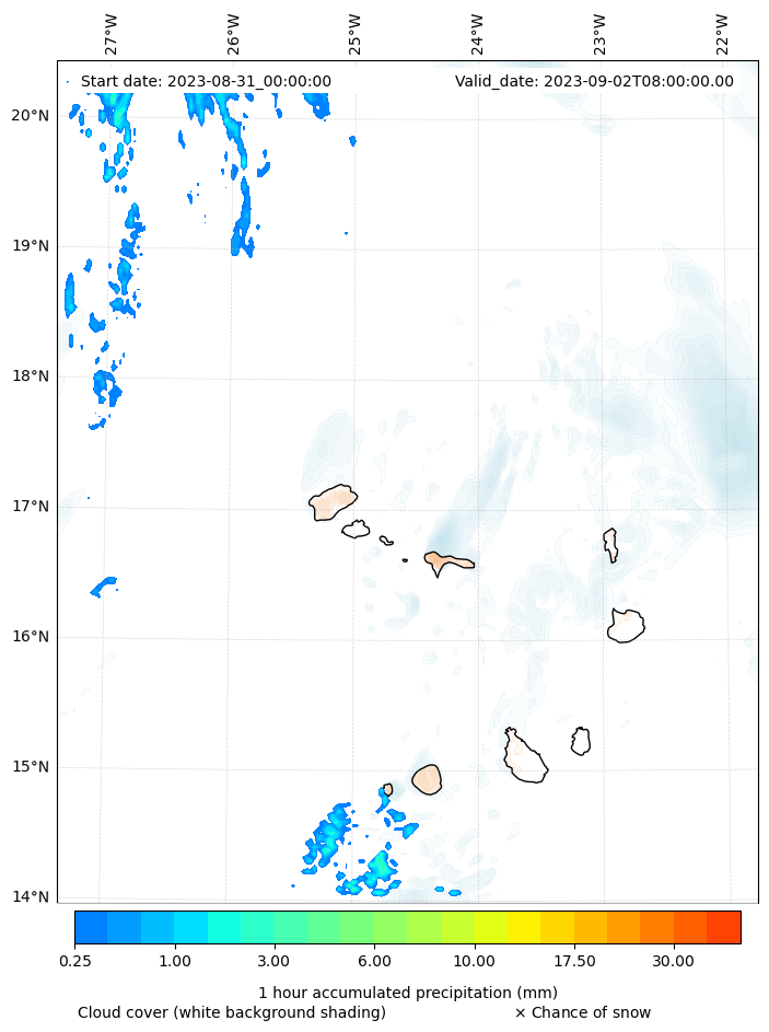 - Snow mixing ratio (g kg¯¹)
