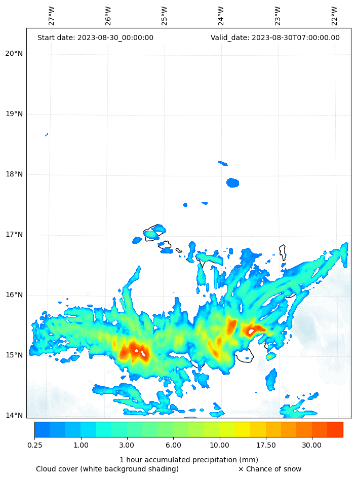- Snow mixing ratio (g kg¯¹)