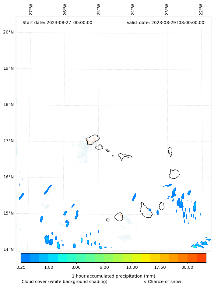 - Snow mixing ratio (g kg¯¹)
