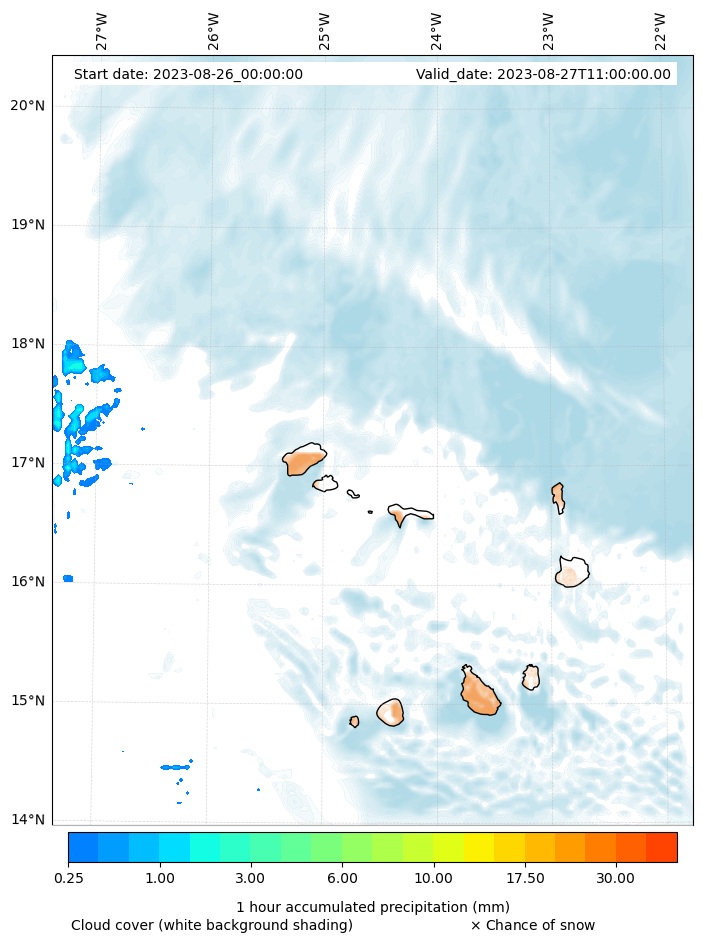 - Snow mixing ratio (g kg¯¹)