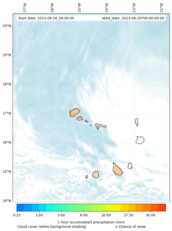 - Snow mixing ratio (g kg¯¹)