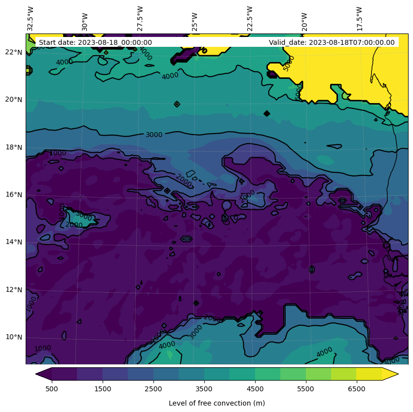 - Level of free convection (m)