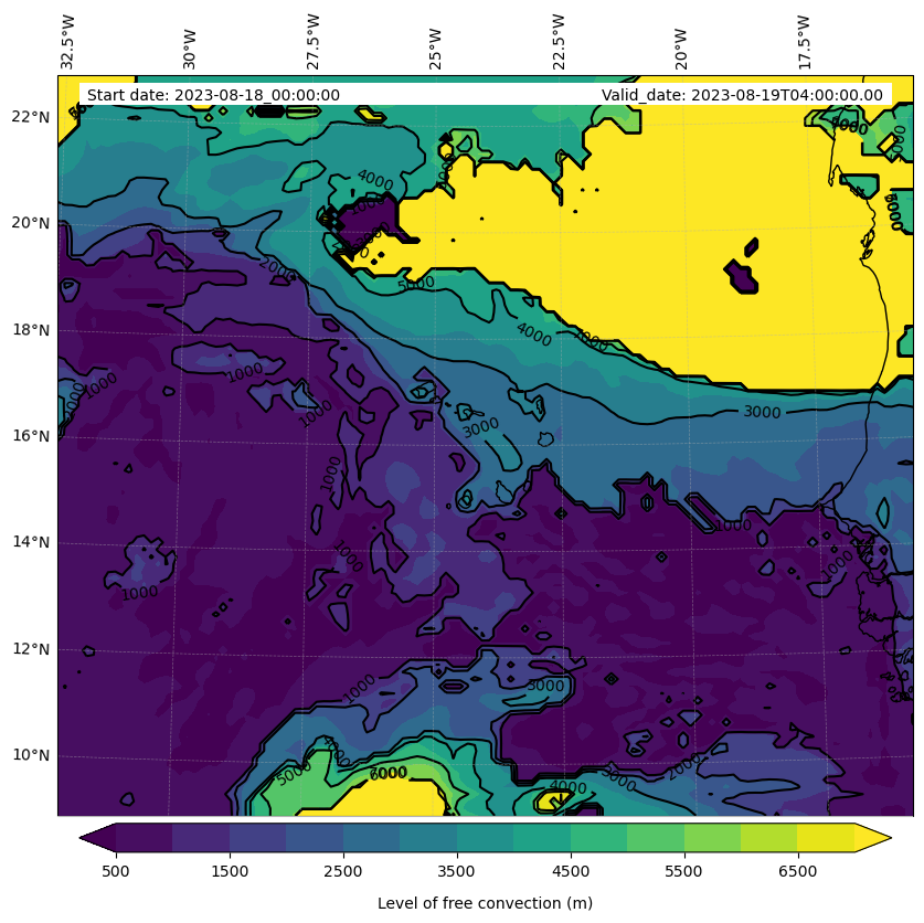 - Level of free convection (m)