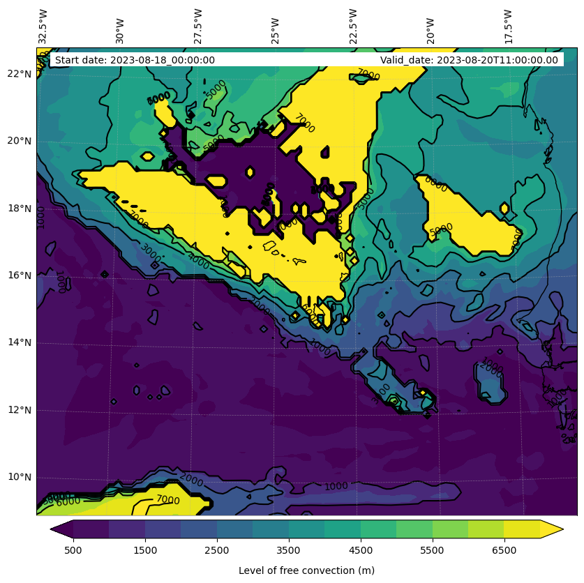• Level of free convection (m)