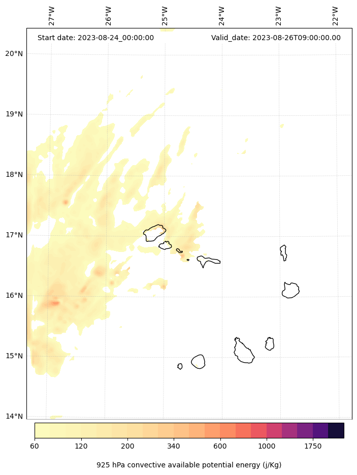 - Maximum CAPE (J/Kg)