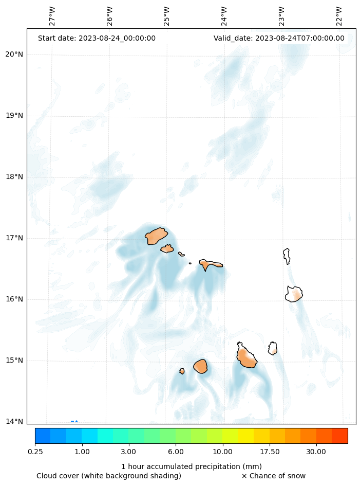 - Snow mixing ratio (g kg¯¹)
