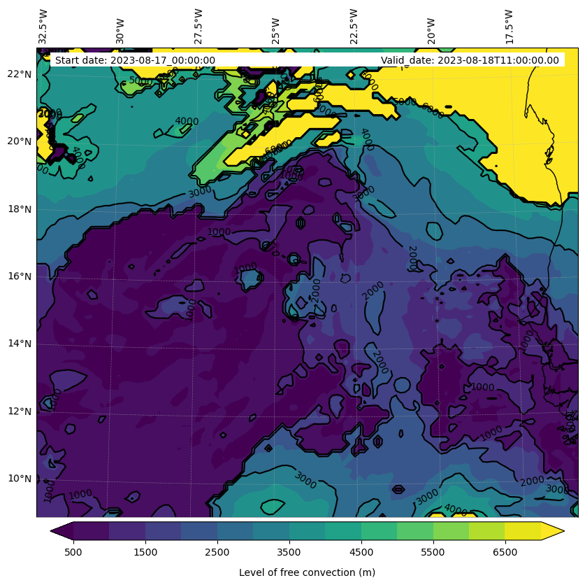 - Level of free convection (m)