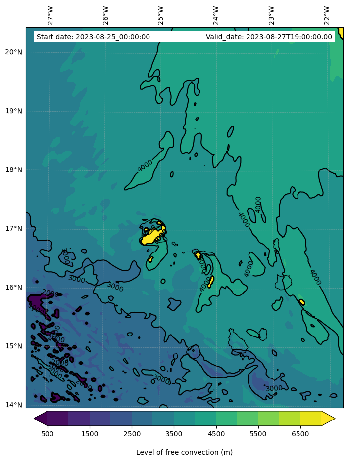 - Level of free convection (m)