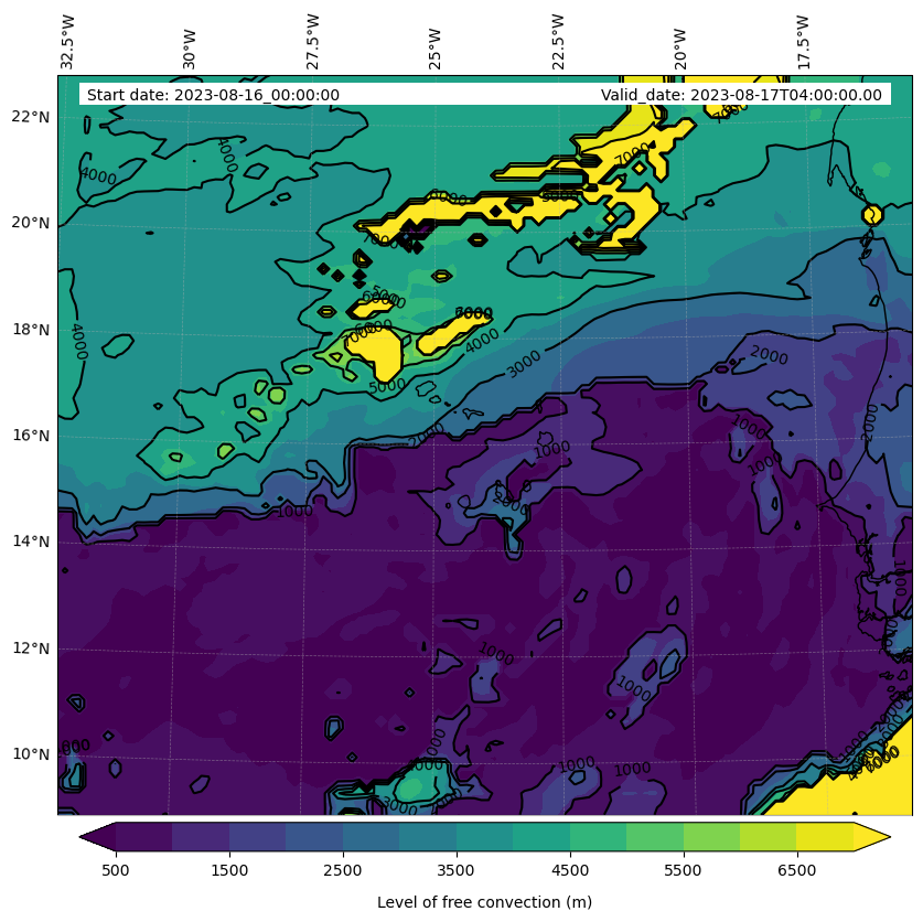 - Level of free convection (m)