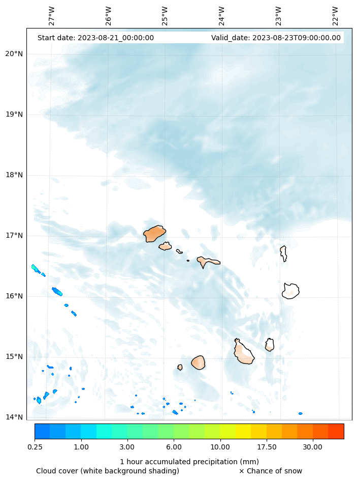 - Snow mixing ratio (g kg¯¹)