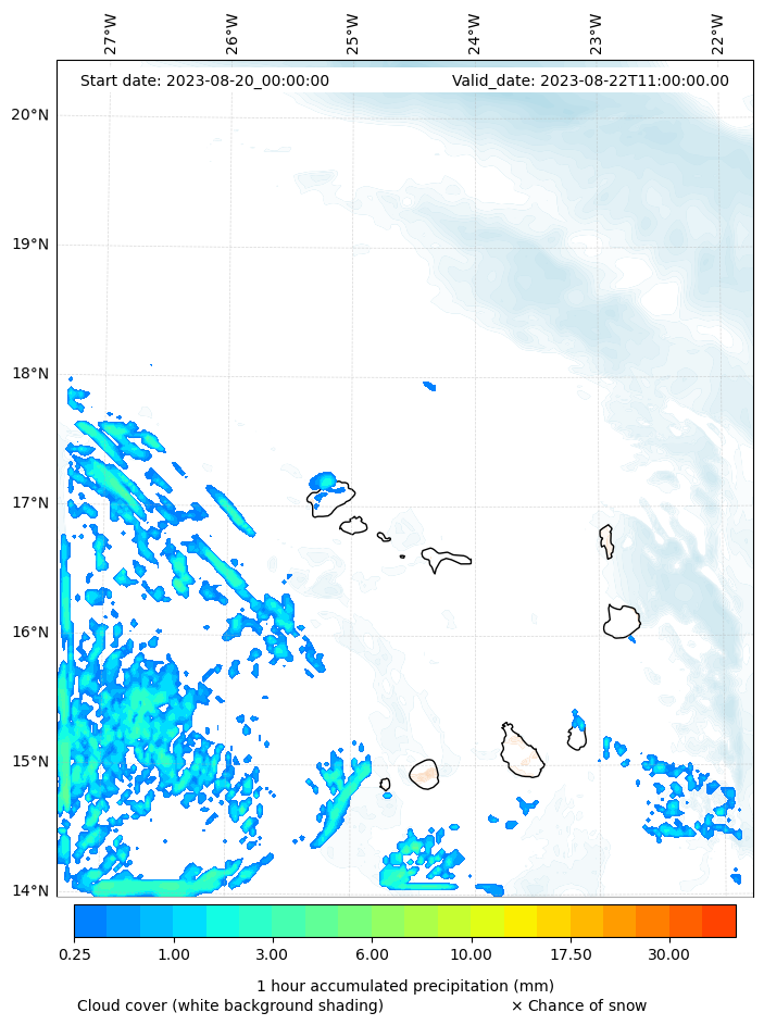 - Snow mixing ratio (g kg¯¹)