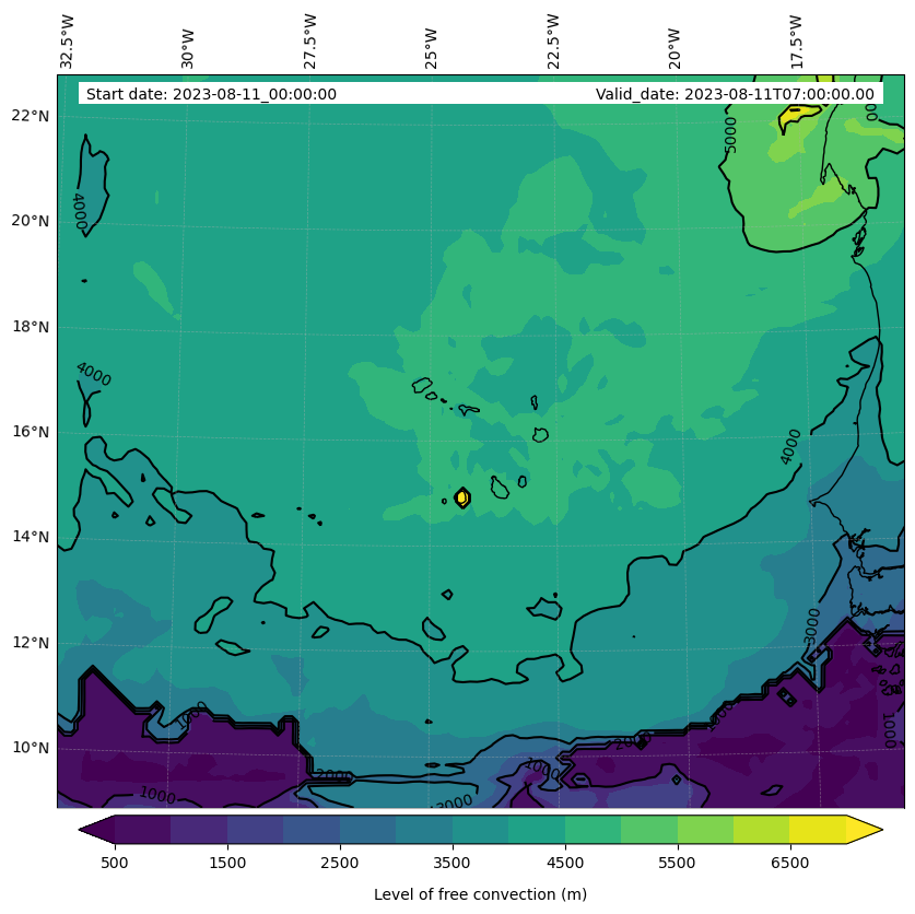 - Level of free convection (m)