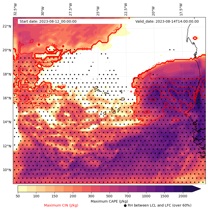 - Maximum CAPE (J/Kg)