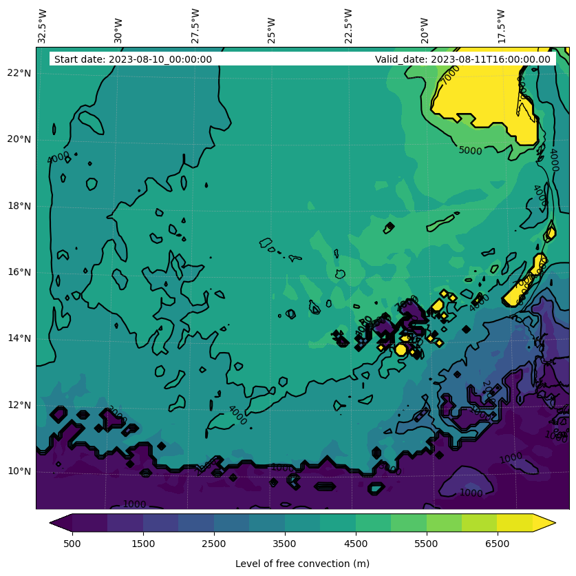 - Level of free convection (m)