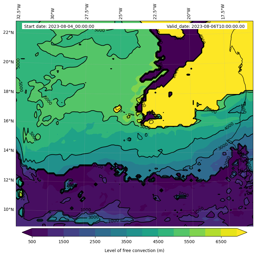 • Level of free convection (m)