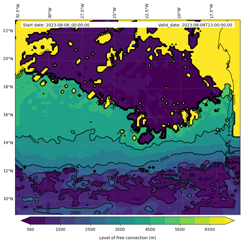 - Level of free convection (m)