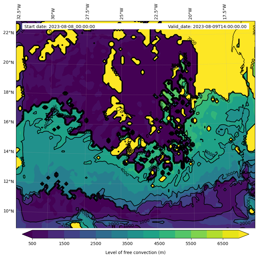 - Level of free convection (m)