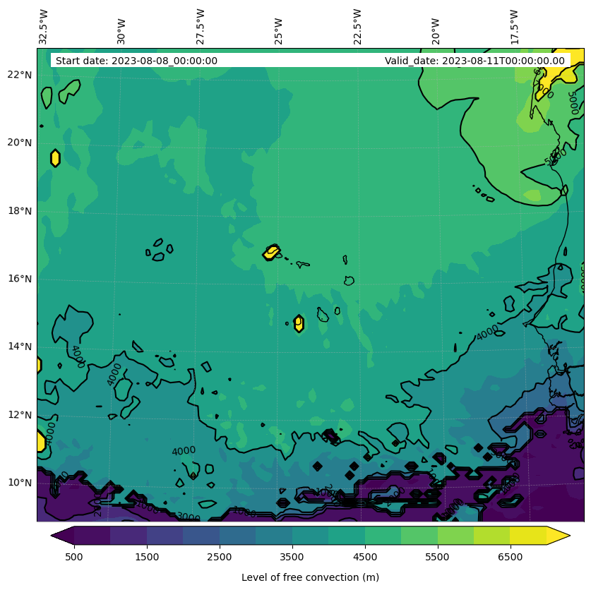 - Level of free convection (m)